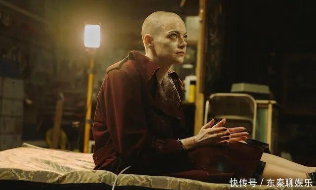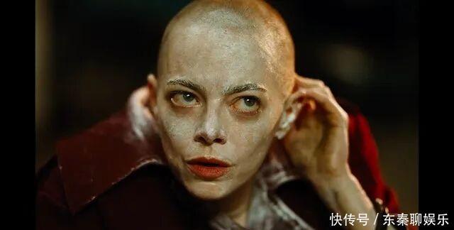 她被剃成光头,面敷白粉,双唇猩红,眼神中有种平静的疯狂。
